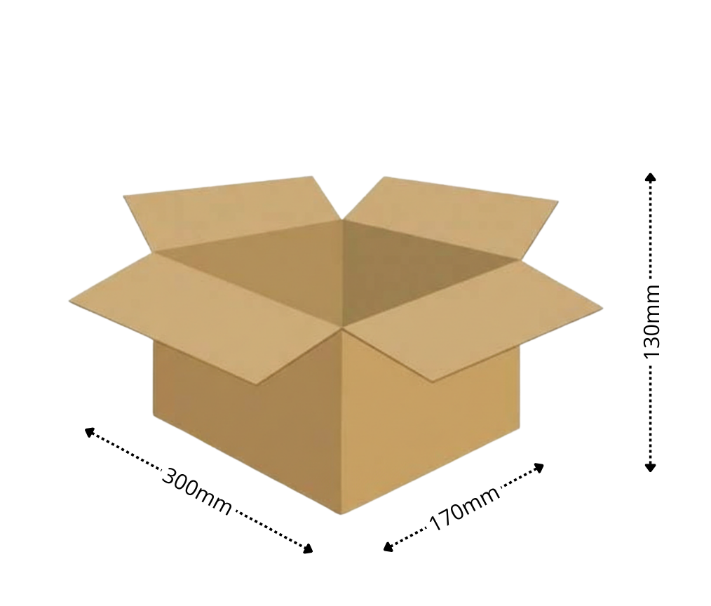 Karton klapowy 300x170x130 mm z tektury 3-warstwowej – wytrzymałe i uniwersalne opakowanie do wysyłki i przechowywania małych produktów.