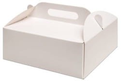 Prezentujemy pudełko na tort z ergonomiczną rączką, idealne dla cukierni, piekarni oraz klientów indywidualnych, którzy cenią sobie wygodę i bezpieczeństwo podczas transportu wypieków.