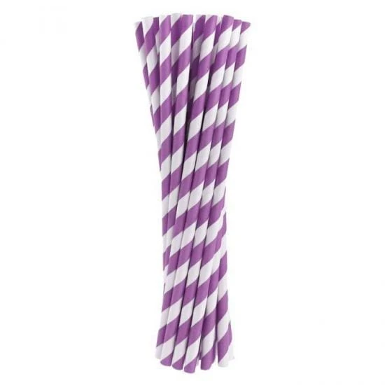 Słomki papierowe lawendowe paski 6x197 mm / op. 24 szt