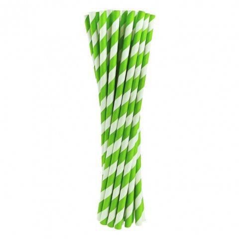 Słomki papierowe pistacjowe paski 6x197 mm / op. 24 szt