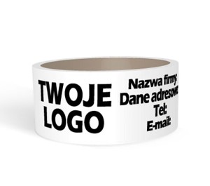 Nadruk jednokolorowy na białej, bądź przezroczystej taśmie.