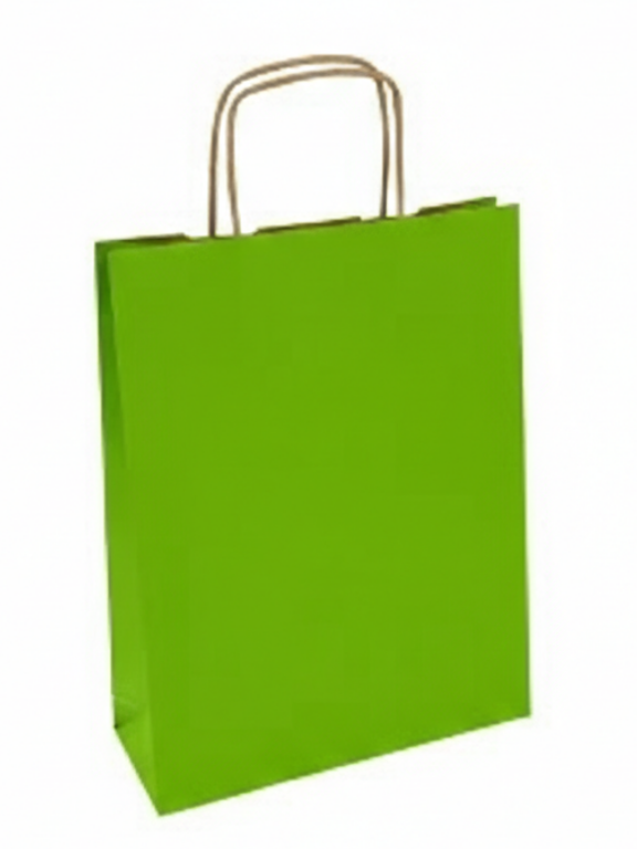 Torba papierowa jasnozielona 24 x 10 x 32 cm z uchwytem skręcanym