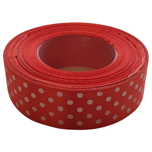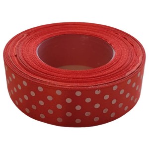 Wstążka satynowa KROPKI 25mm x 22m CZERWONA